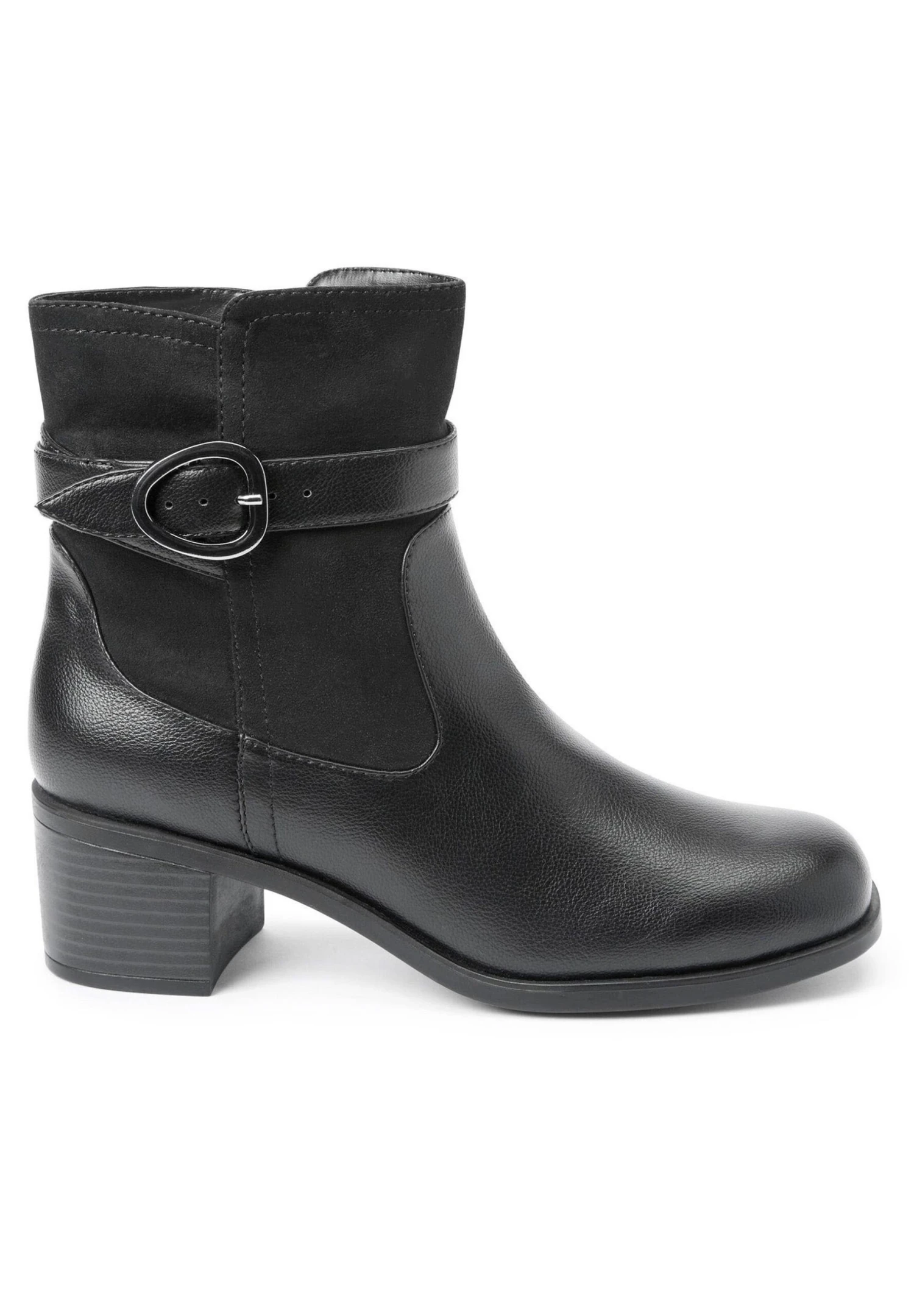 Next Forever Comfort Block Heel Buckle- Korte Laarzen – Black Pu