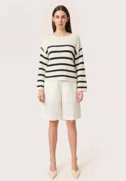 Soaked In Luxury Perle Ls Studio – Trui – Whisper White And Navy Stripe